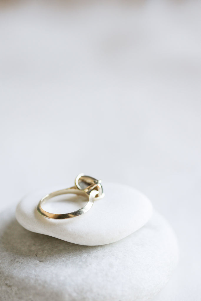 This ring pairs beautifully with the JP SEVEN POINT EMERALD CUT SAPPHIRE RING for a colorful set or complements perfectly when stacked with JP GOLD BANDS