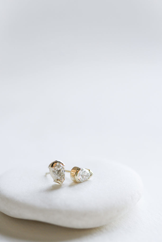 These one-of-a-kind pear-shaped diamond studs are the perfect elegant addition to your ear stack. The partial bezel setting adds just the right amount of interest while letting the diamonds remain the true stars of the show.