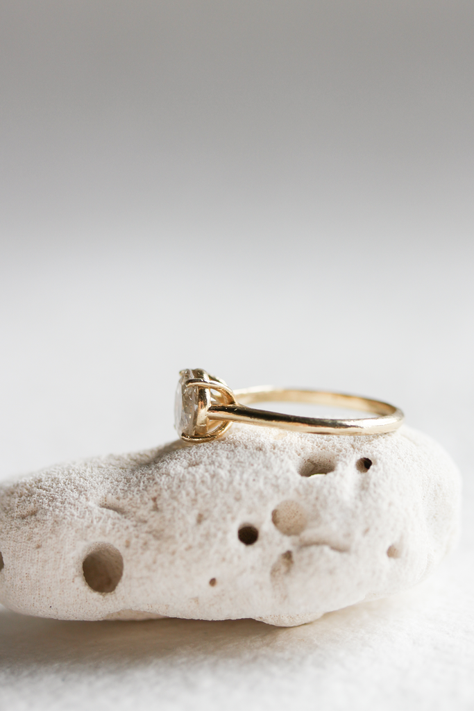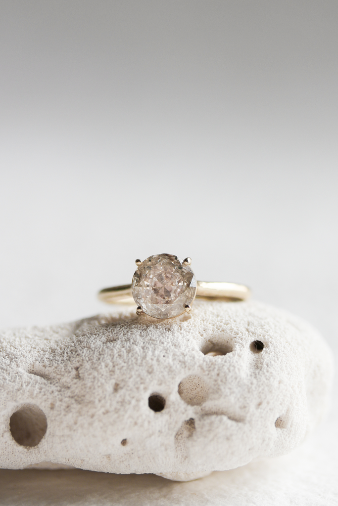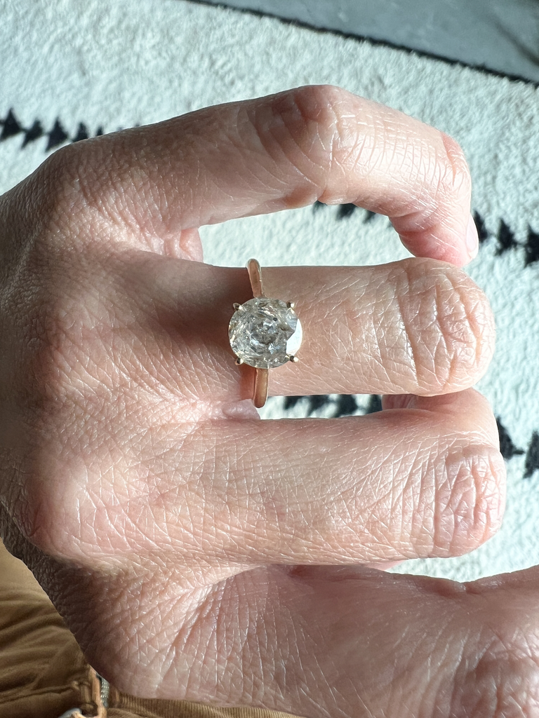 This 1.86ct salt and pepper diamond is a true one-of-a-kind gem. The open-bottom cathedral setting adds a playful twist to this classic design.
