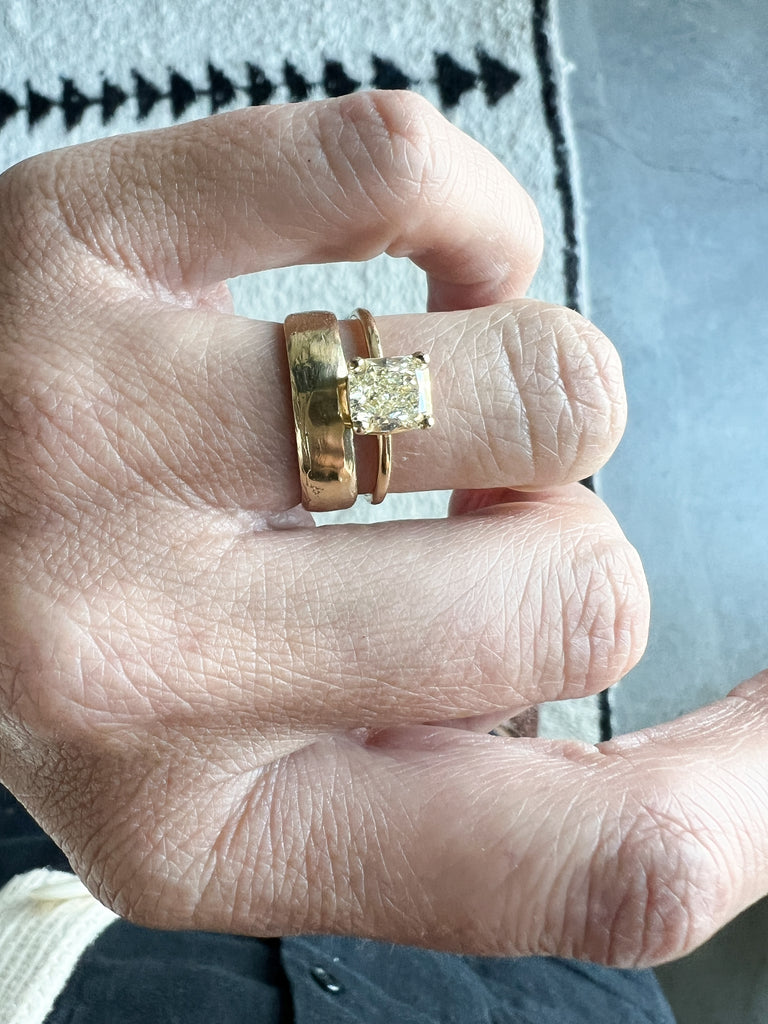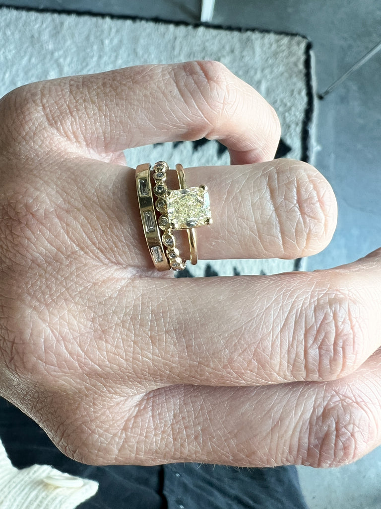 This cushion cut yellow diamond stunner is the perfect subtle shade of warmth and color. The classic 4 prong setting allows the stone to shine.