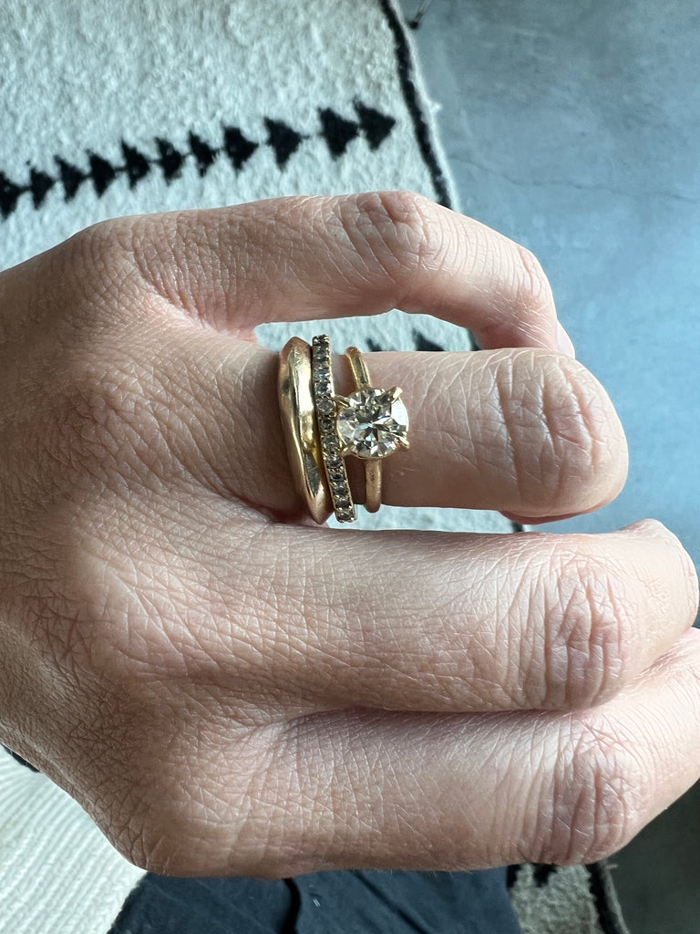 This setting truly lets the stone be the star. This gorgeous 1.02ct round diamond with our simple 4 prong settings makes for a classic with a twist. This piece truly is a timeless beauty.