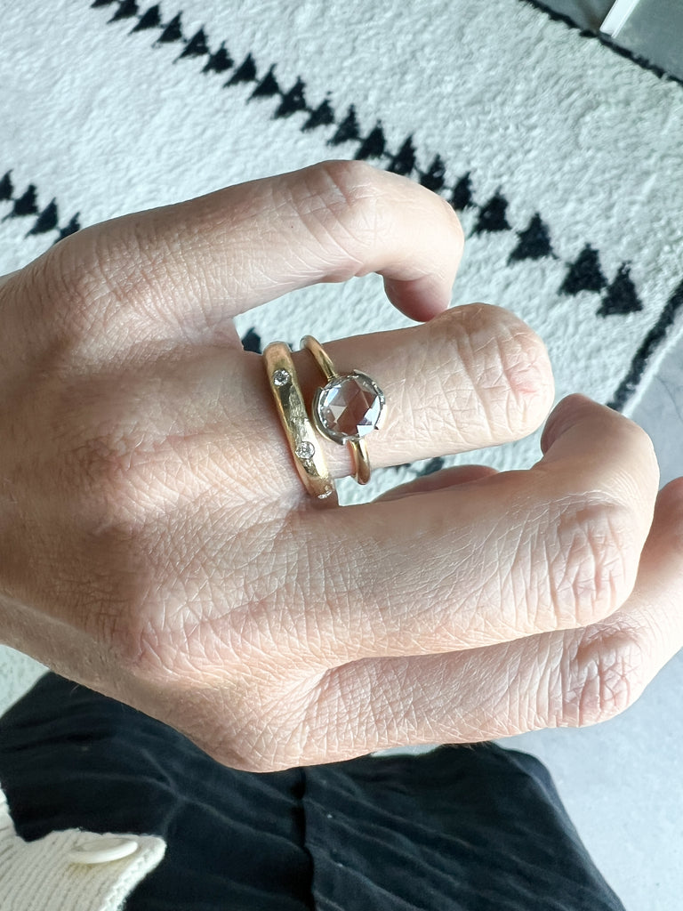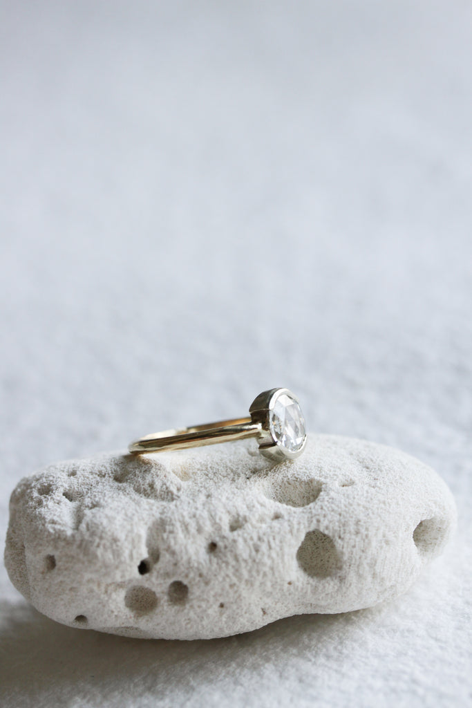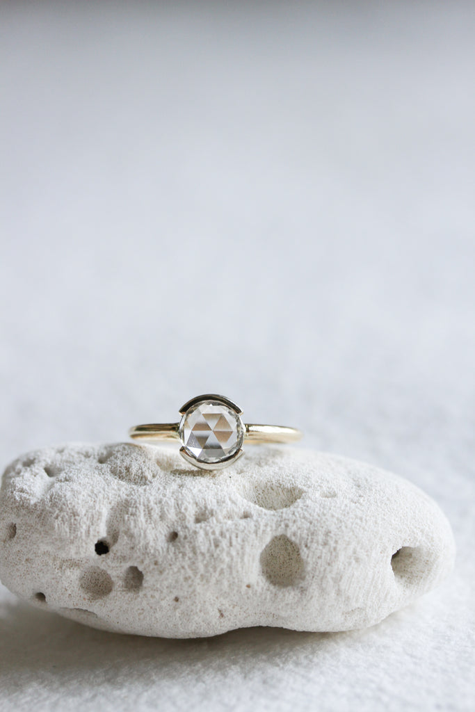 JP GILD MIXED METAL PARTIAL BEZEL ROSE CUT DIAMOND RING