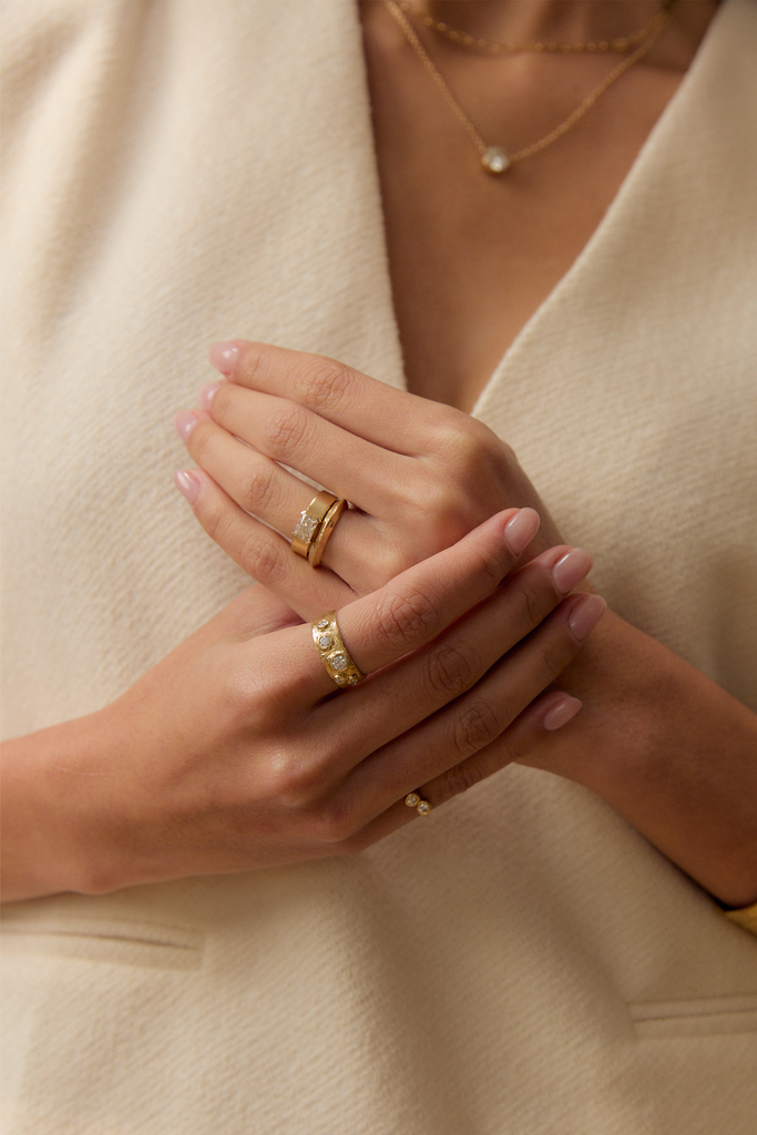 Each and every JP GILD piece is handcrafted with this special collection in mind with a focus on environmental and social responsibility. We love sourcing and working with unique diamonds for these truly singular and one-of-a-kind pieces. From salt and pepper to champagne to classic white, we want to highlight the unique nature of each and appreciate beauty in the perfectly imperfect.