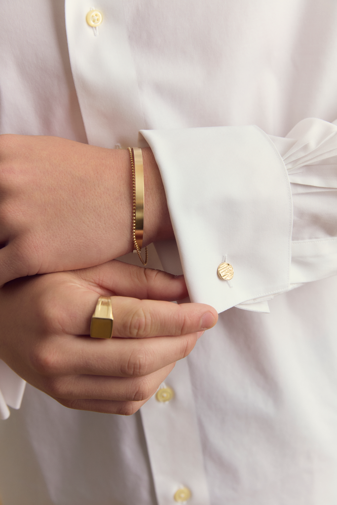 The JP MENS MAR CUFFLINKS is a modern take on a classic gold cufflink. We love the  MAR cufflinks paired with the JP MENS PACIFIC BAND and the JP BALL CHAIN BRACELET