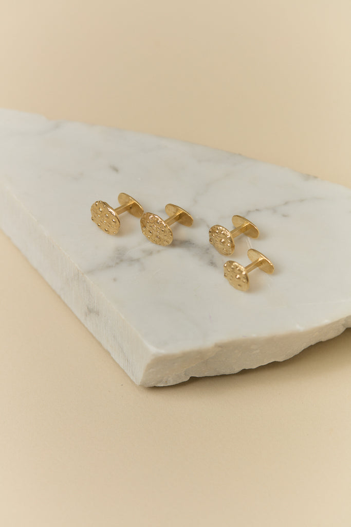 The JP MENS URCHIN CUFFLINKS is a modern take on a classic gold cufflink. We love the URCHIN cufflinks paired with the JP MENS PACIFIC BAND and the JP BALL CHAIN BRACELET