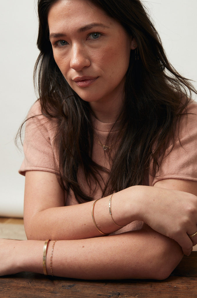 Stack with other pieces such as the JP FLAT CUFF or the JP BOX CHAIN BRACELET.