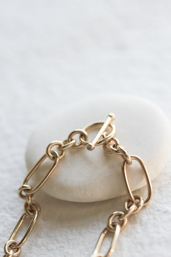 Each of these beautiful chains is handcrafted, link by link, and finished with a diamond studded toggle clasp. The luxurious weight of these timeless beauties is nothing short of breathtaking. Add these to any necklace stack to create the perfect ensemble.