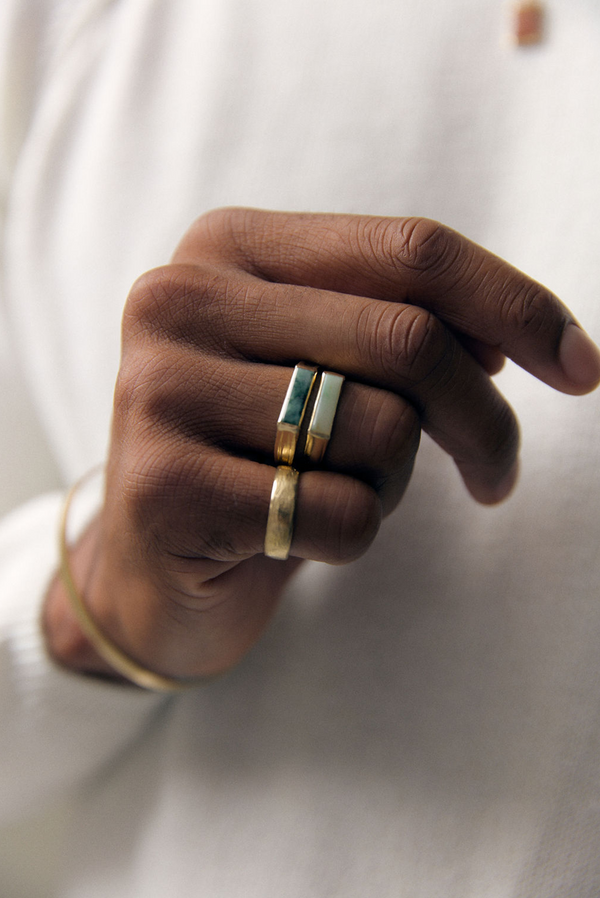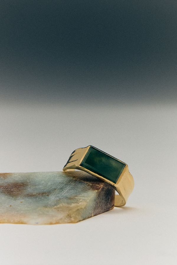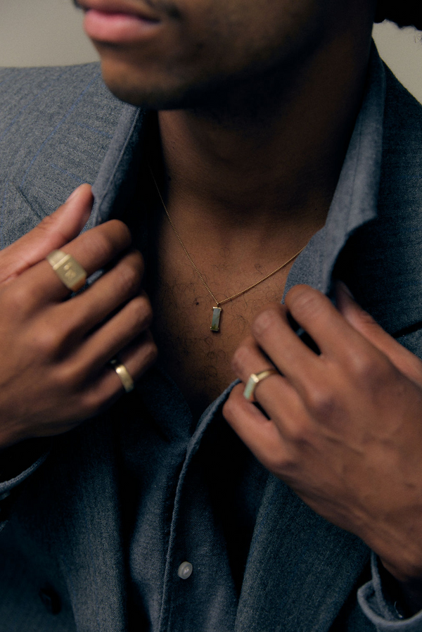 Jane and Kirk Robert Chambers have worked together for many years. Kirk is known as the epitome of style with ease. When he approached Jane about a hole in the jewelry industry for quality men's rings that were cool, she knew this collaboration would be a perfect fit. Years ago, Jane's father had gifted her some rough Jade from his travels to Myanmar, and she knew immediately that cutting those stones for this project would be so special. Jane ended up adding 2 unisex necklaces as well to round out the JPxKR collection. This collection includes a limited quantity of truly one-of-a-kind pieces.