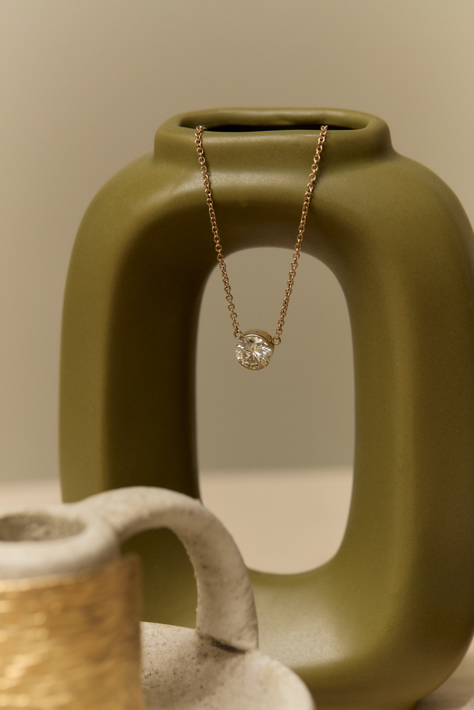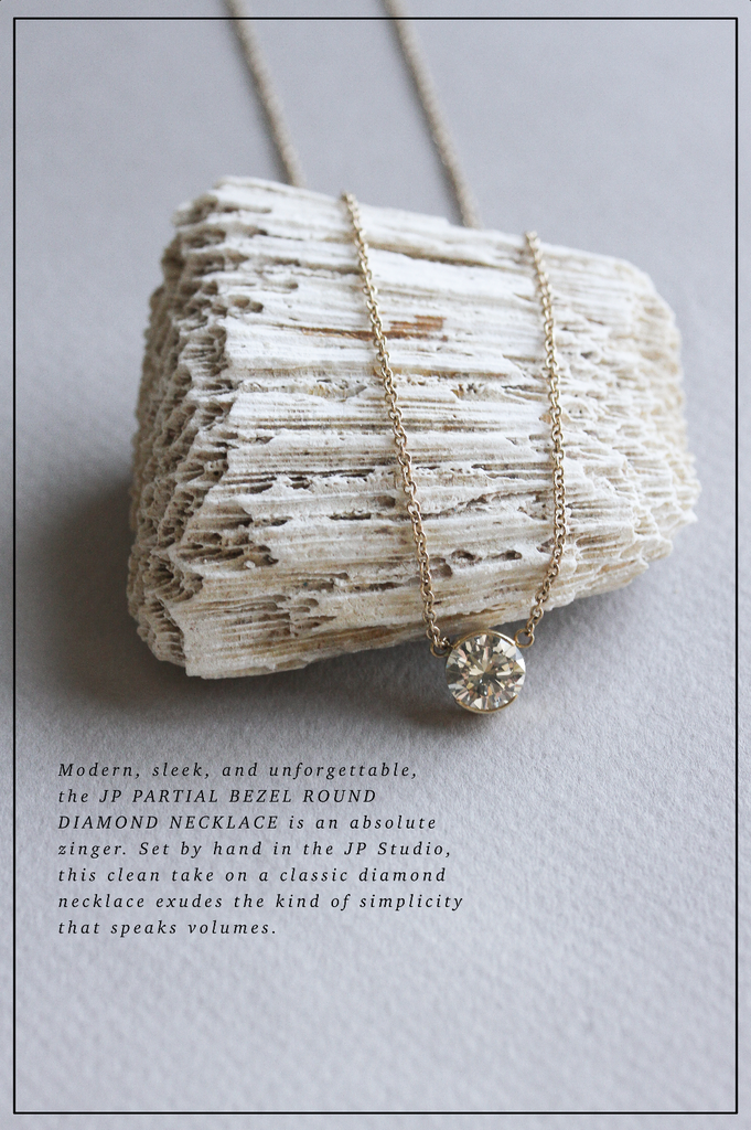 The JP Partial Bezel Round Diamond Necklace is an absolute stunner. This 2.06ct ct zinger is a truly singular beauty.