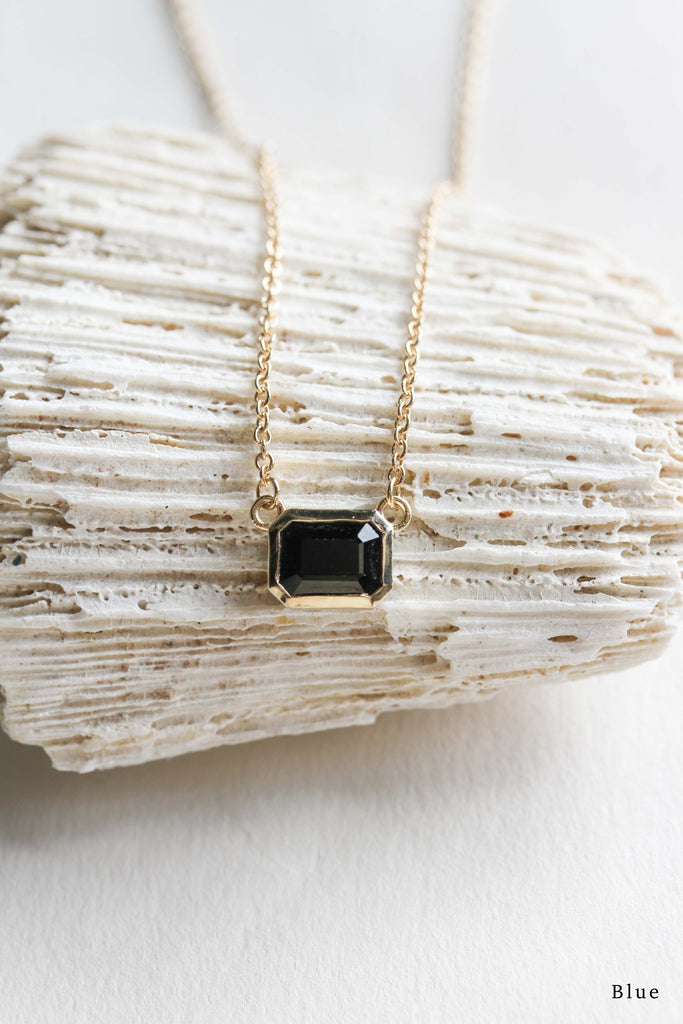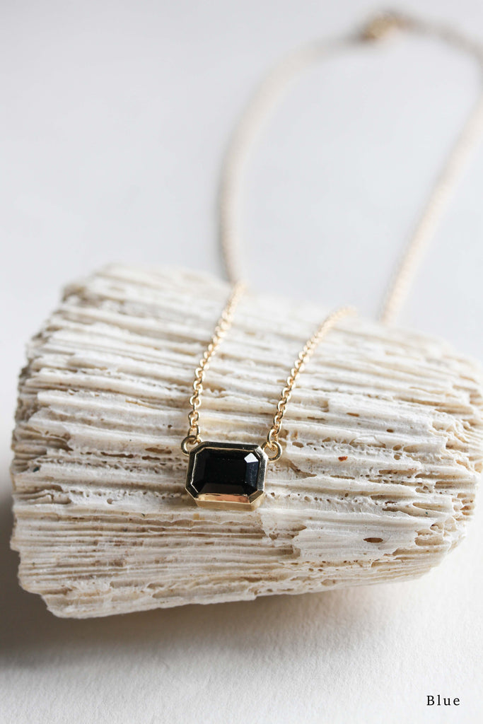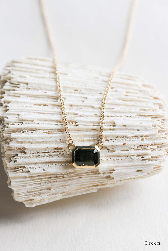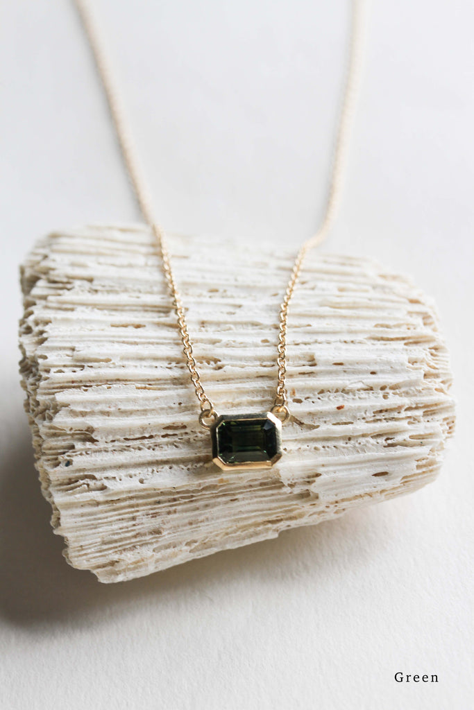 JP BEZEL SET EMERALD CUT BLUE GREEN SAPPHIRE NECKLACE