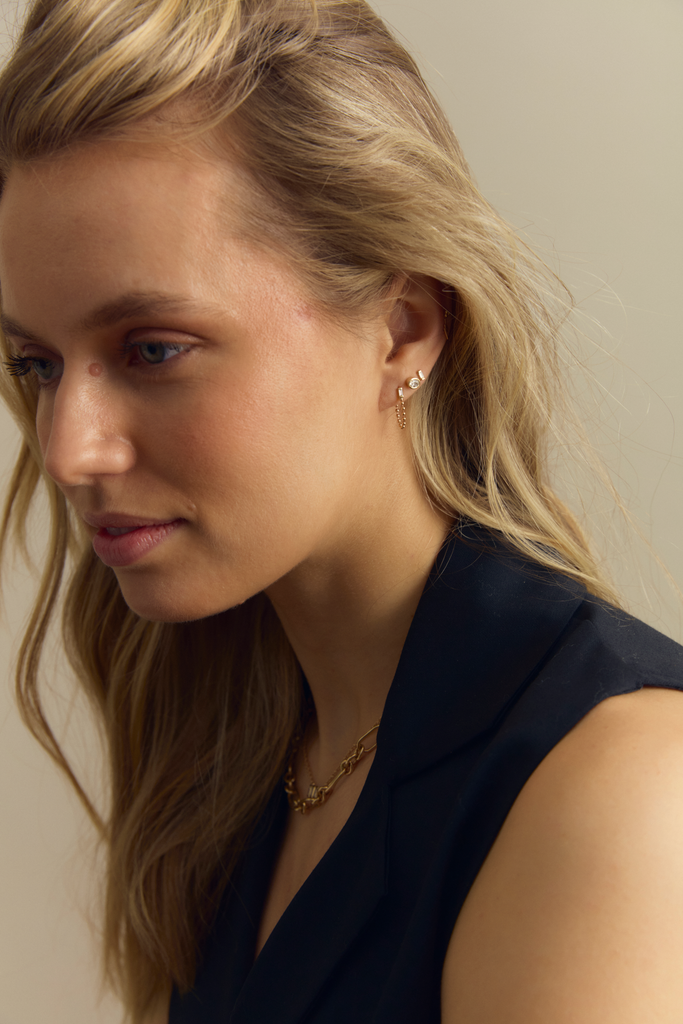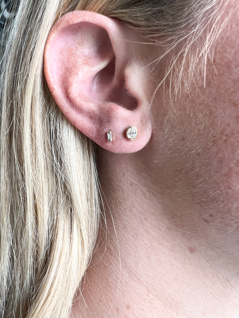 This stud is the perfect blend of modern and classic. The stunning oval diamonds are set in a sleek bezel, creating a timeless piece that's perfect for both everyday wear and special occasions.