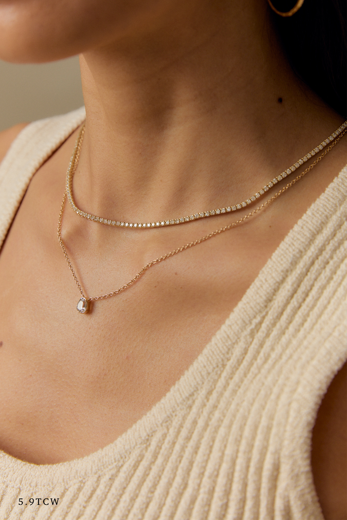Wear this zinger alone or pair it with your favorite chain necklaces.  Or take it to the next level and pair it with the JP PARTIAL BEZEL SET OLD MINE PEAR DIAMOND NECKLACE or the JP PARTIAL BEZEL SET HEXAGON DIAMOND NECKLACE for the perfect pairing.