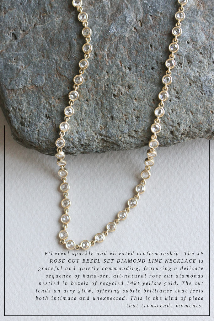 The JP 20" Rose Cut Bezel Set Diamond Line Necklace is a true showstopper. Its effortless sophistication makes it perfect for any occasion—or simply no occasion at all. Adorned with rose-cut white diamonds, this piece is simply stunning.