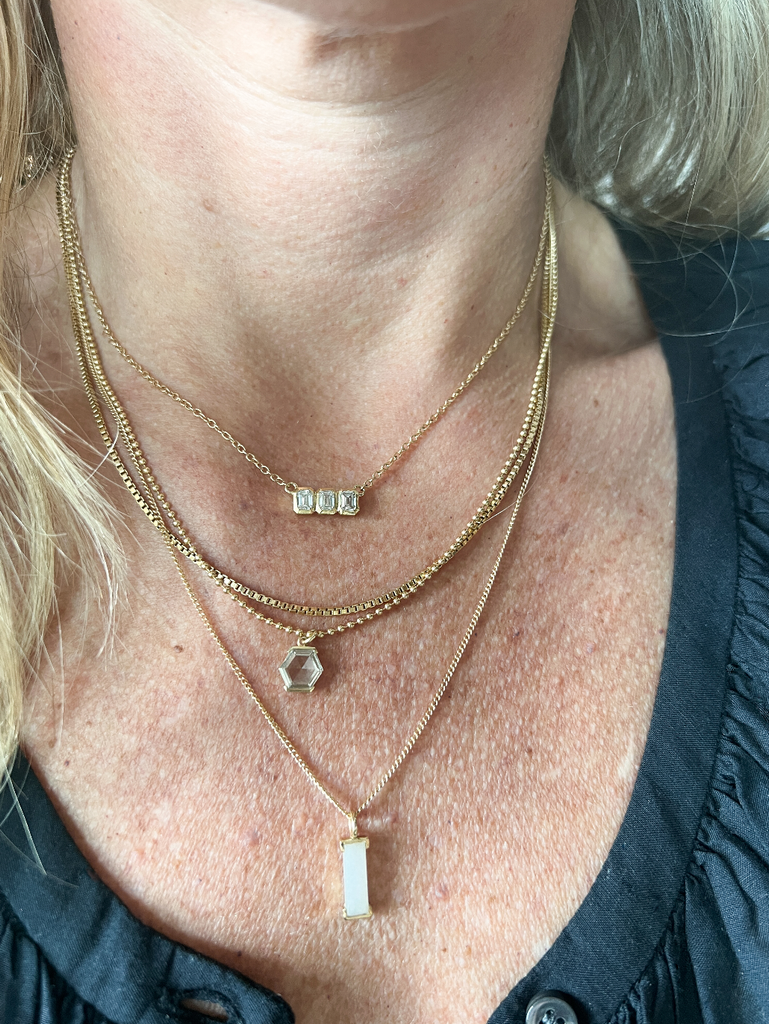 Style with the JP EMERALD CUT DUET DIAMOND STUDS for a pairing or stack it with the JP BOX CHAIN