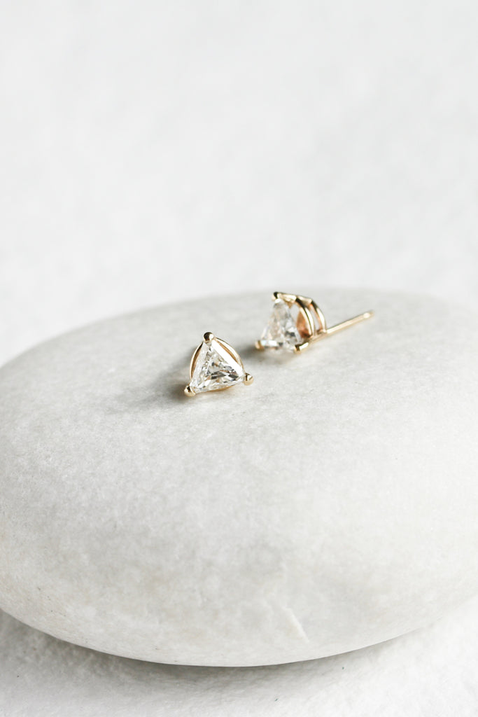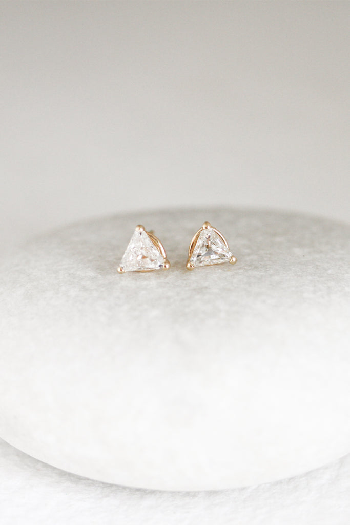 These studs bring the sparkle. The timeless diamond is given a modern twist with a sleek triangular cut.