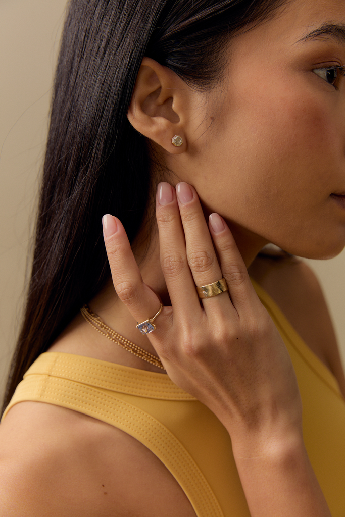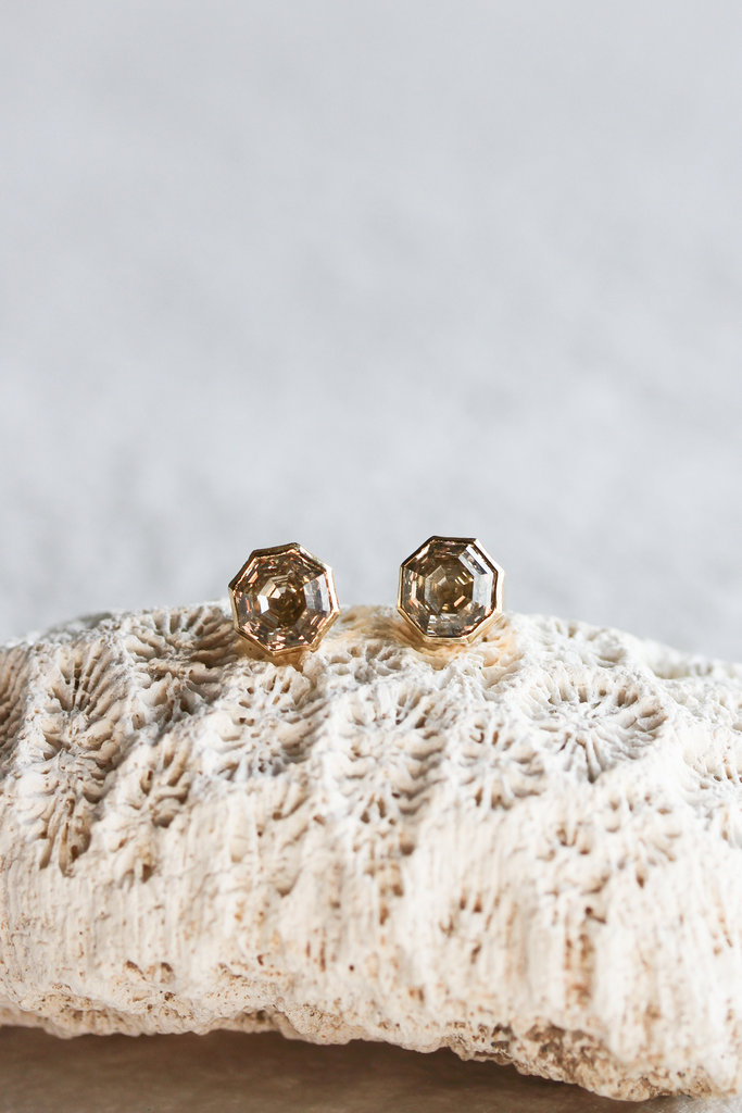 These earrings are the perfect stud to make a statement. The octagonal step cut and bezel setting paired with the warm champagne color of these diamonds creates a truly singular set of studs to make dreams come true.