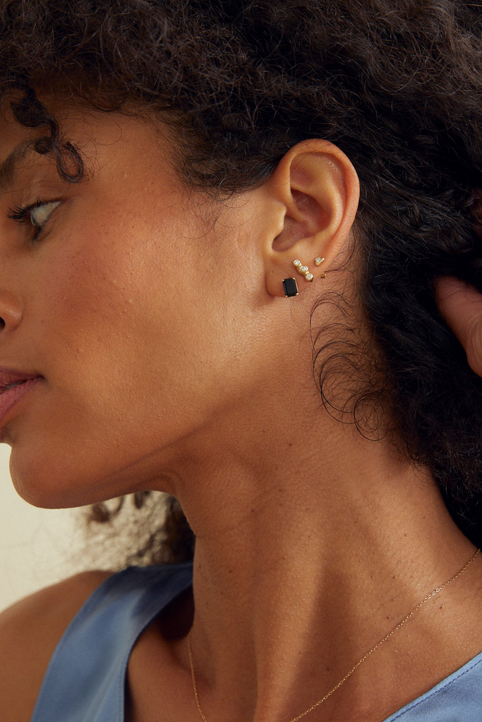 These studs are the finishing touch to any outfit. The clean lines and tiny sparkle are perfect for everyday wear.