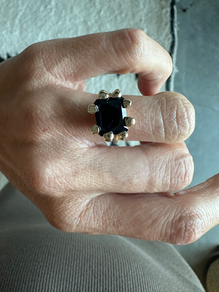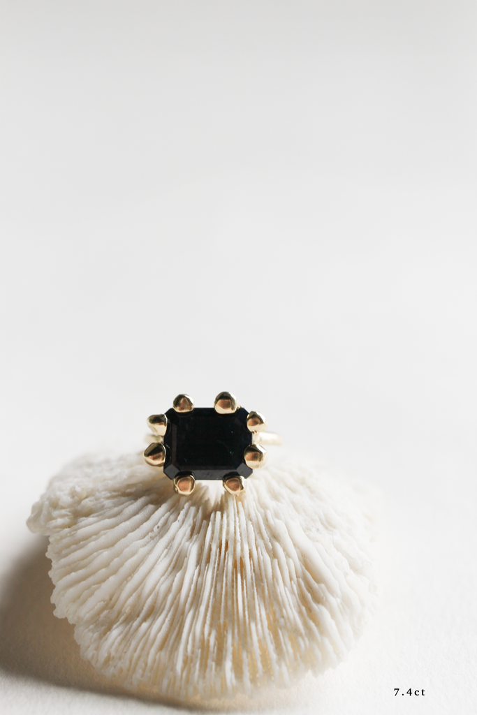 JP EMERALD CUT MIDNIGHT SAPPHIRE XL PRONG RING