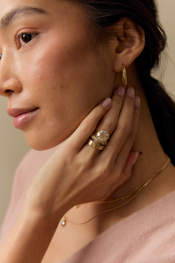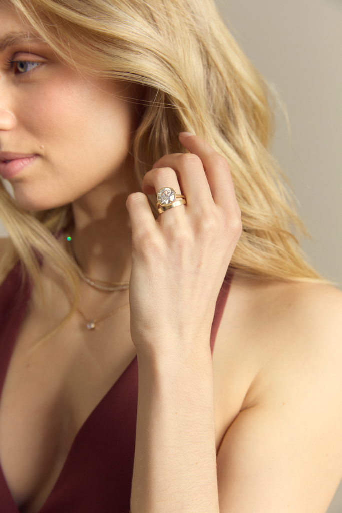 This is a piece that stands alone, but if you are looking to complete your wedding stack, we love pairing this ring with the JP LARGE CIRCLES ETERNITY BAND or JP WOMENS DUNES BAND.