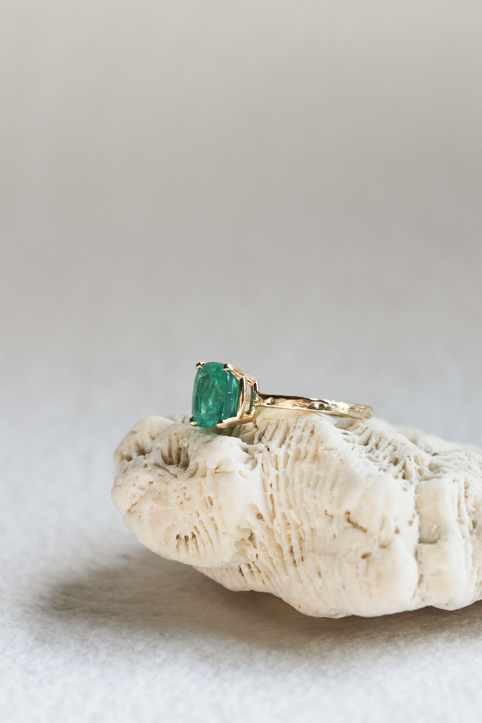 This exquisite Colombian emerald twig ring is a subtle show stopper. The gorgeous green color of the stone is truly one of a kind.