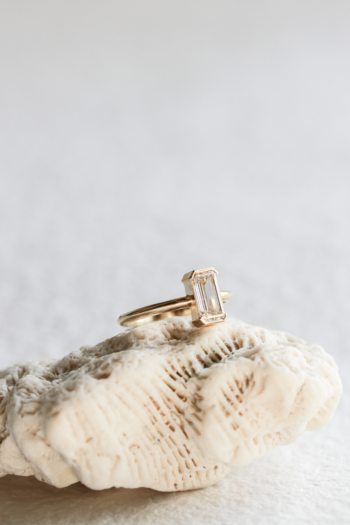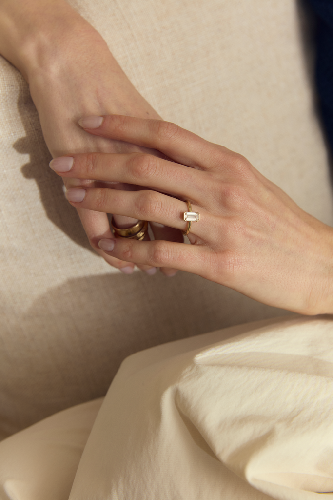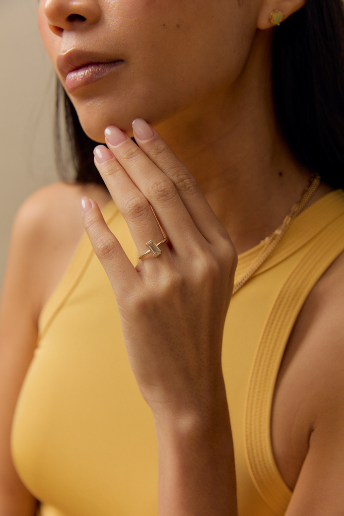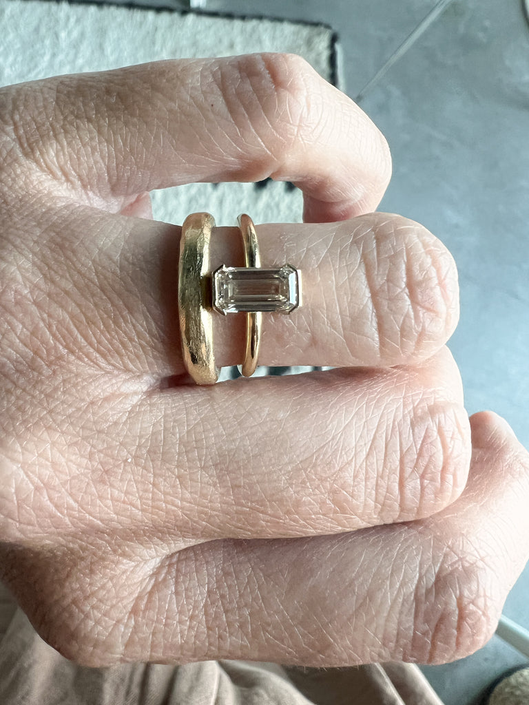 JP GILD PARTIAL BEZEL SET EMERALD CUT DIAMOND RING