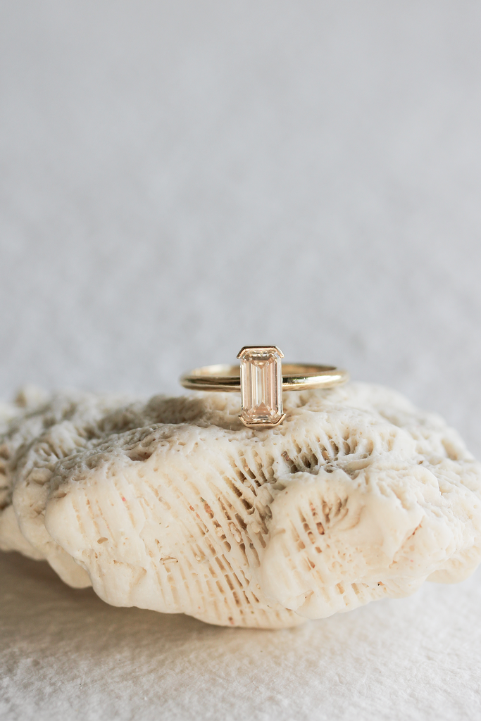 If you are looking for a timless stunner with a modern twist, this is the ring for you. The elegant partial bezel setting lets the stone take center stage.