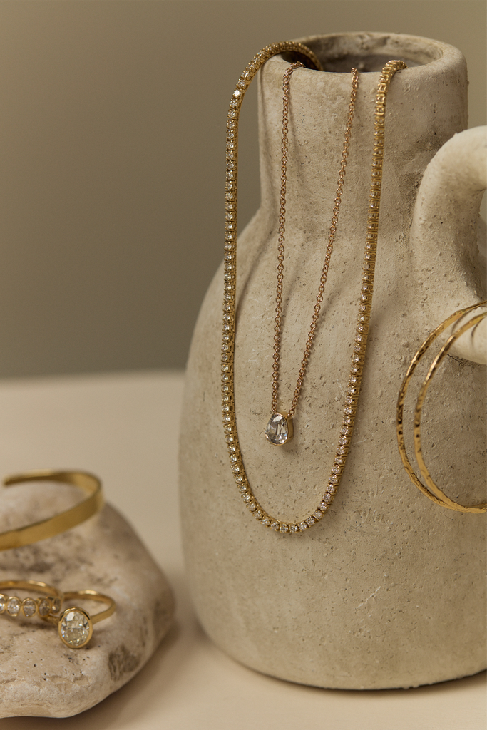 This necklace shines as it should solo, or can be layered with a JP Box Chain or the JP DIAMOND LINE Necklace for the perfect elevated necklace stack.