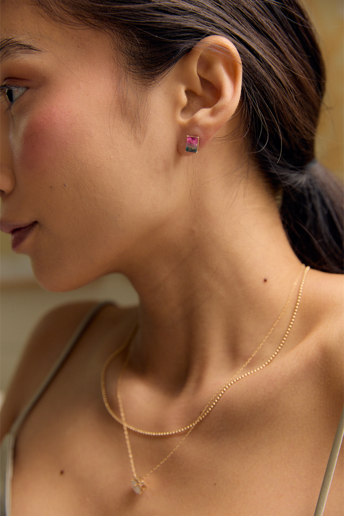 Stack the JP POPE STUDS and JP KNIFE EDGE BAR STUDS with these unique Tourmaline earrings for the perfect pairing.